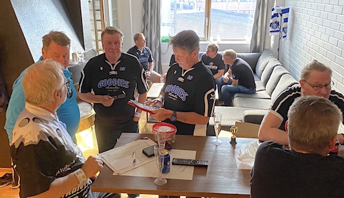 Tromsö pelipaita nimmarilla, ja golffari Matilda Castrenin nimmaroidut aurinkolippa ja golfpallo (Golfjutskat päätettiin kuitenkin säästää golfkisaan. Jygä hoitaa)Loppupelissä Alfauros VG:tä onnisti Alfa-lippiksen kanssa